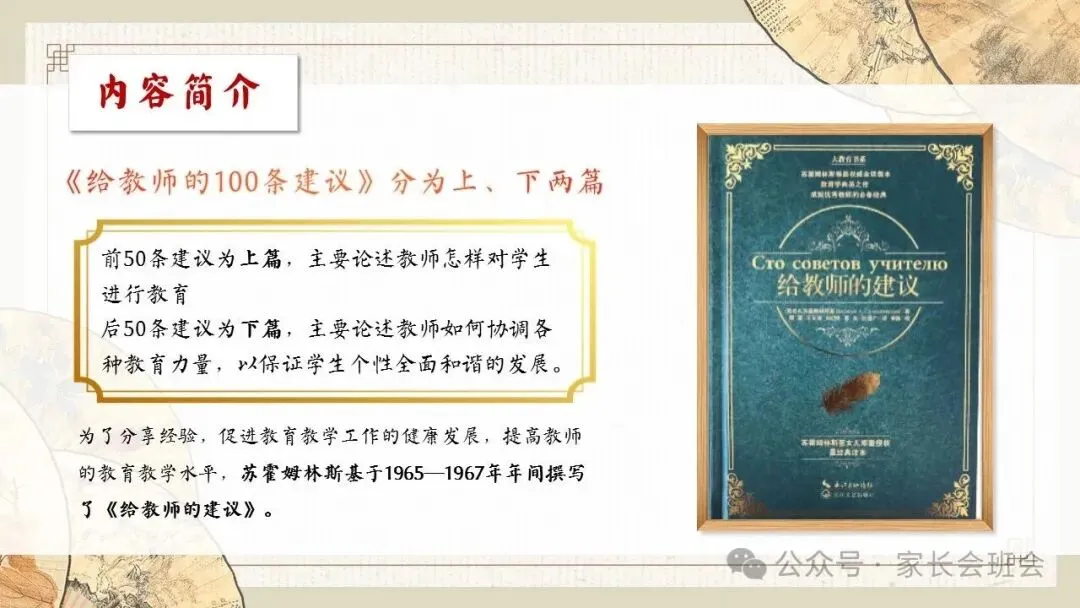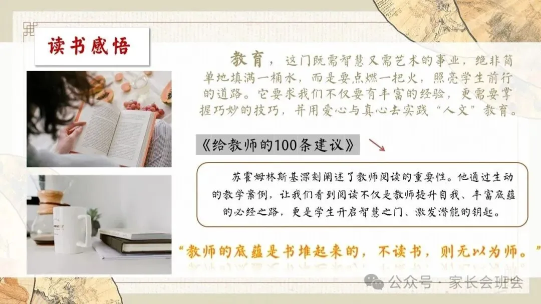>教师读书分享会ppt:给教师的100条建议.(含讲稿)