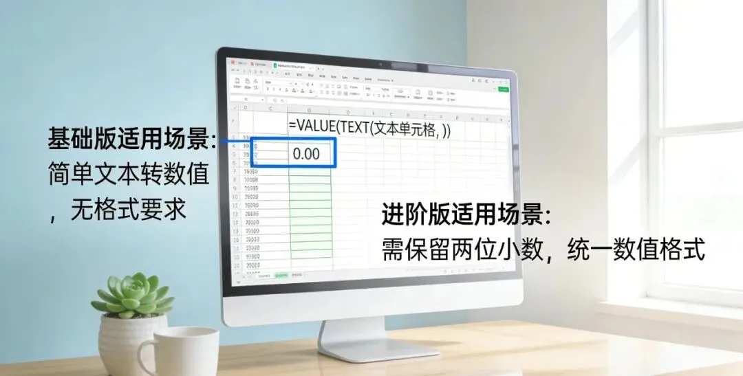 技巧1:TEXT+VALUE组合(文本转数,告别计算报错,新手零压力)