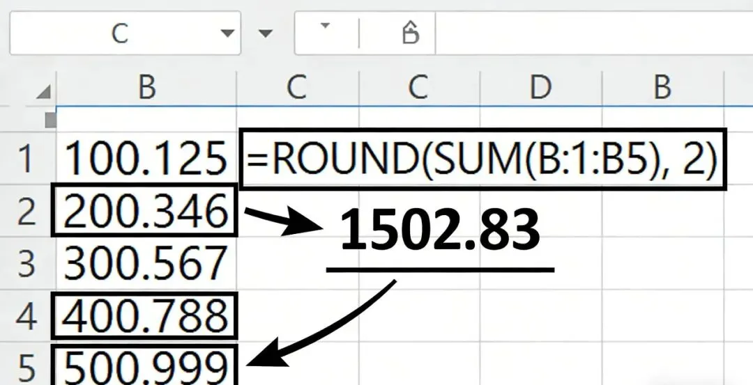 技巧2:ROUND+SUM组合(求和四舍五入,一步到位不返工,零误差)