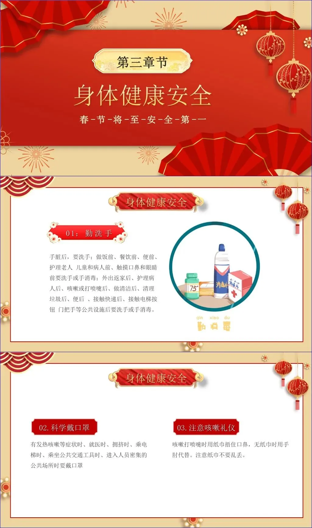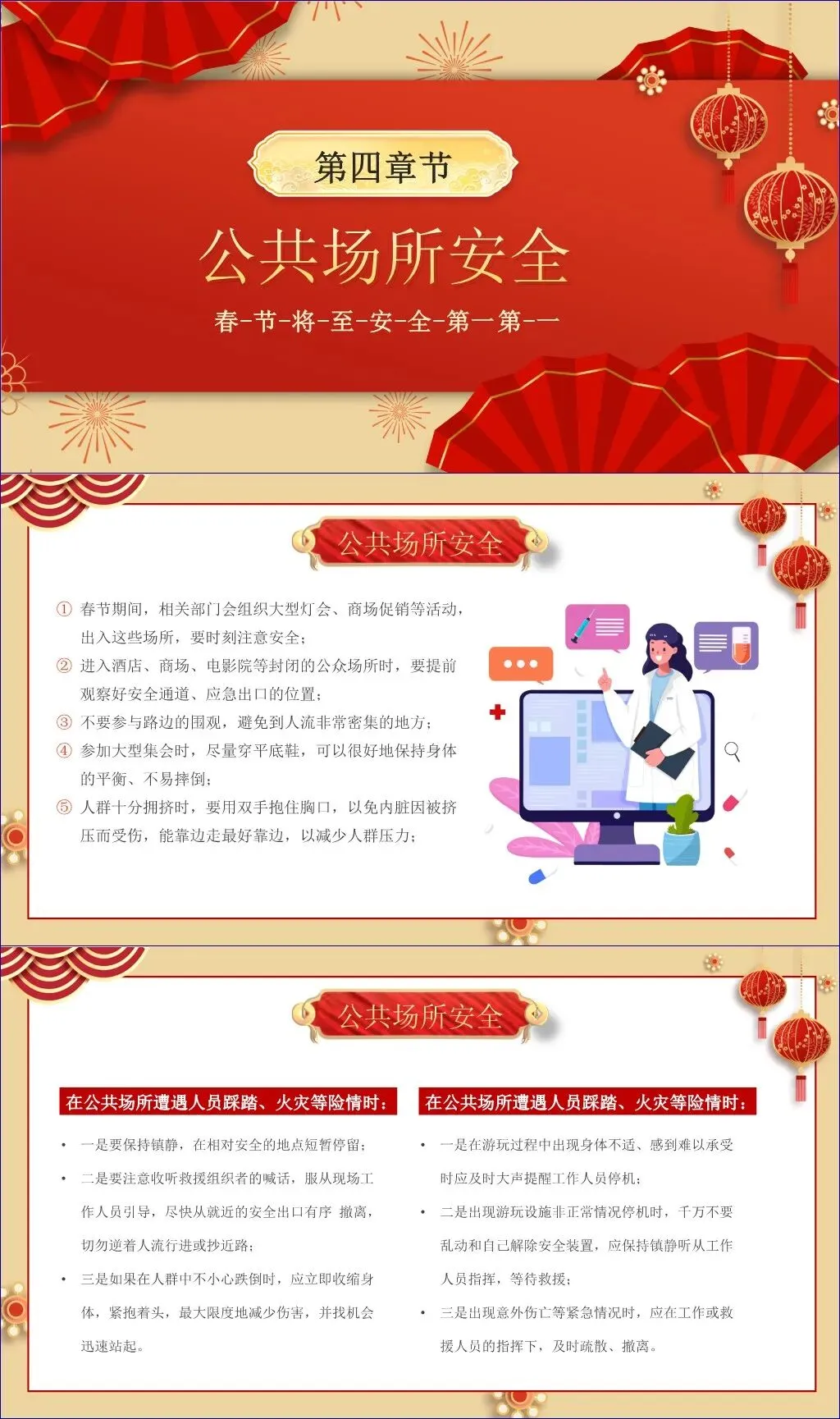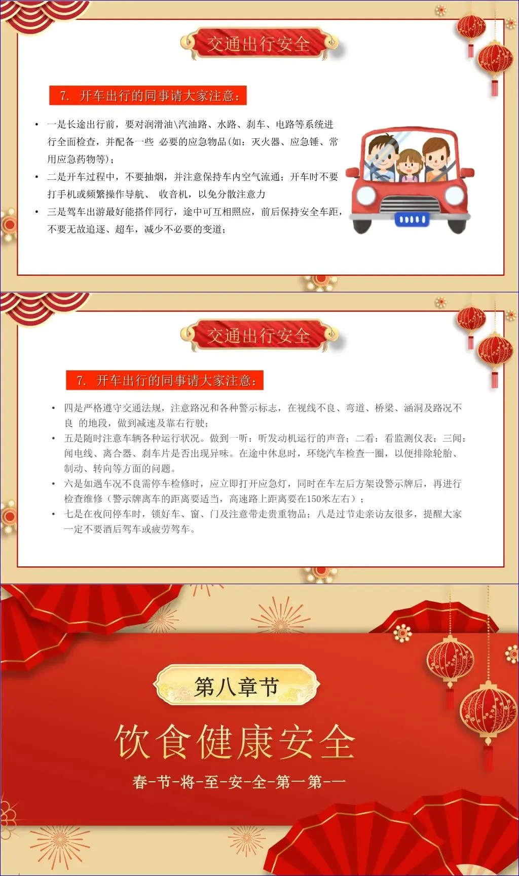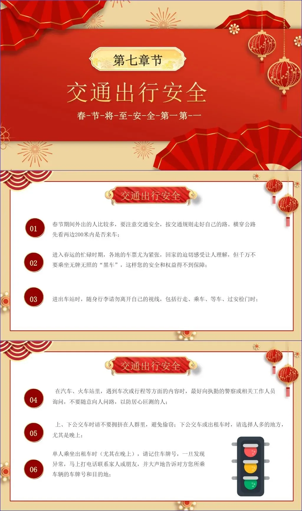 该文档是《2026春节假期前安全专题培训》PPT,旨在提醒员工和公众在春节前后注意各类安全事项,确保度过一个平安、祥和的节日。全文共分为八个章节,涵盖以下方面: