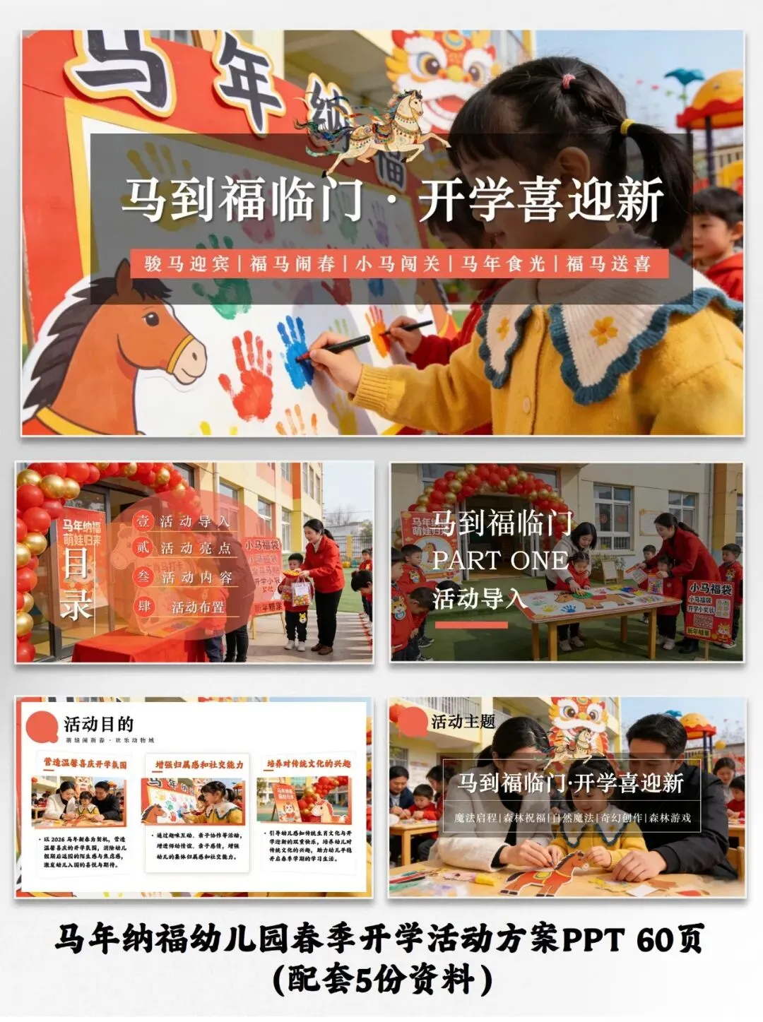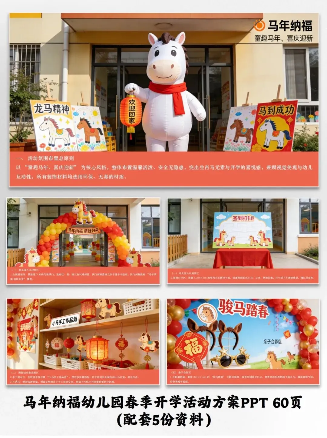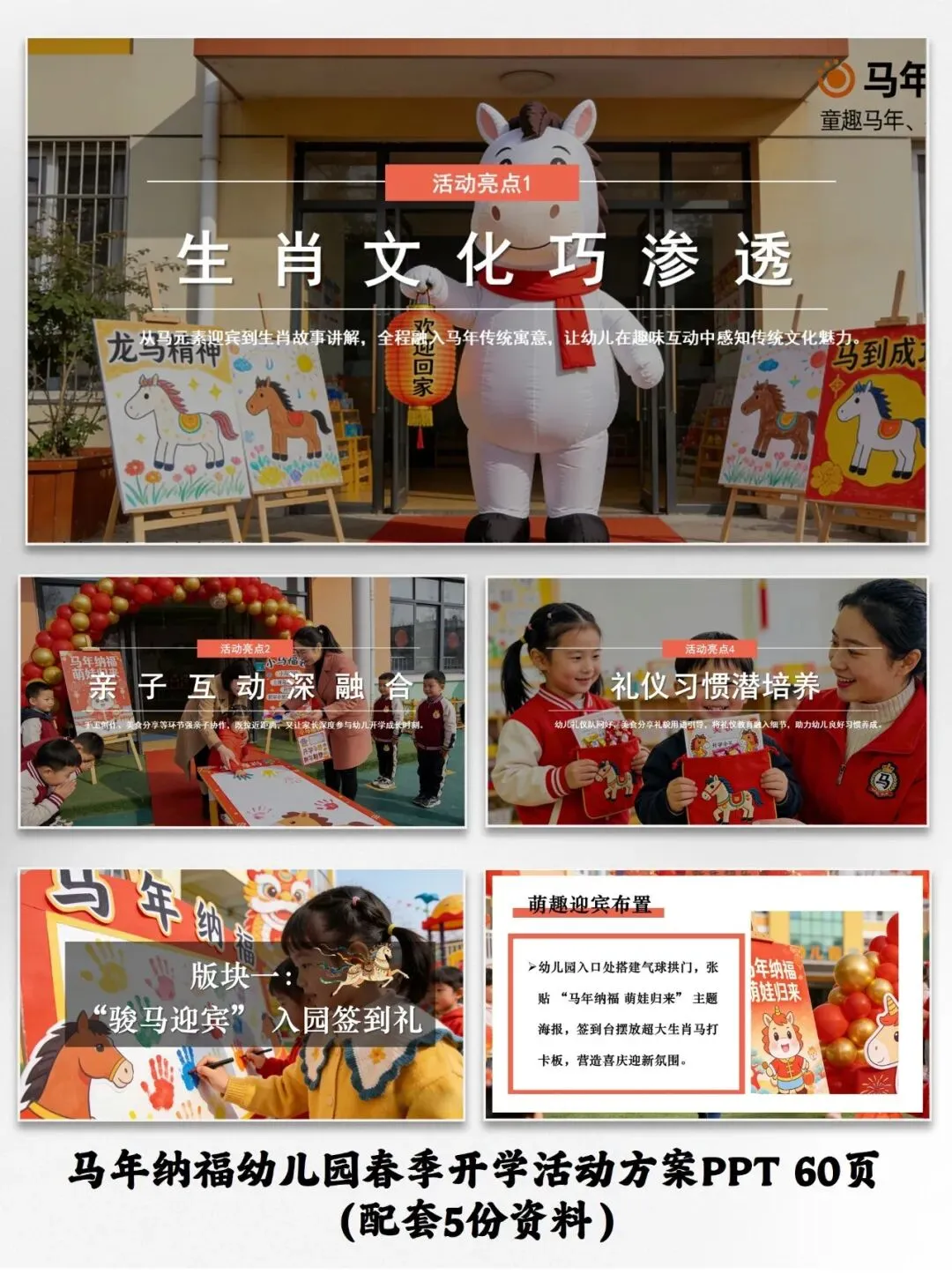 马年纳福幼儿园春季开学活动方案PPT(配套5份资料)