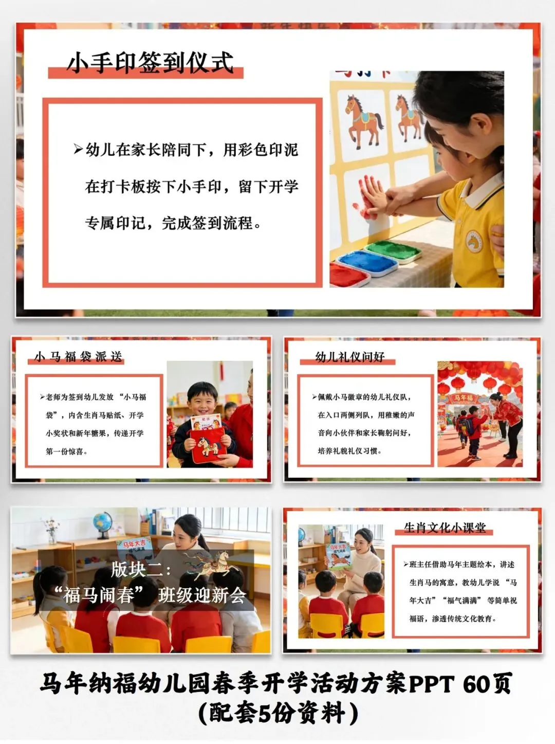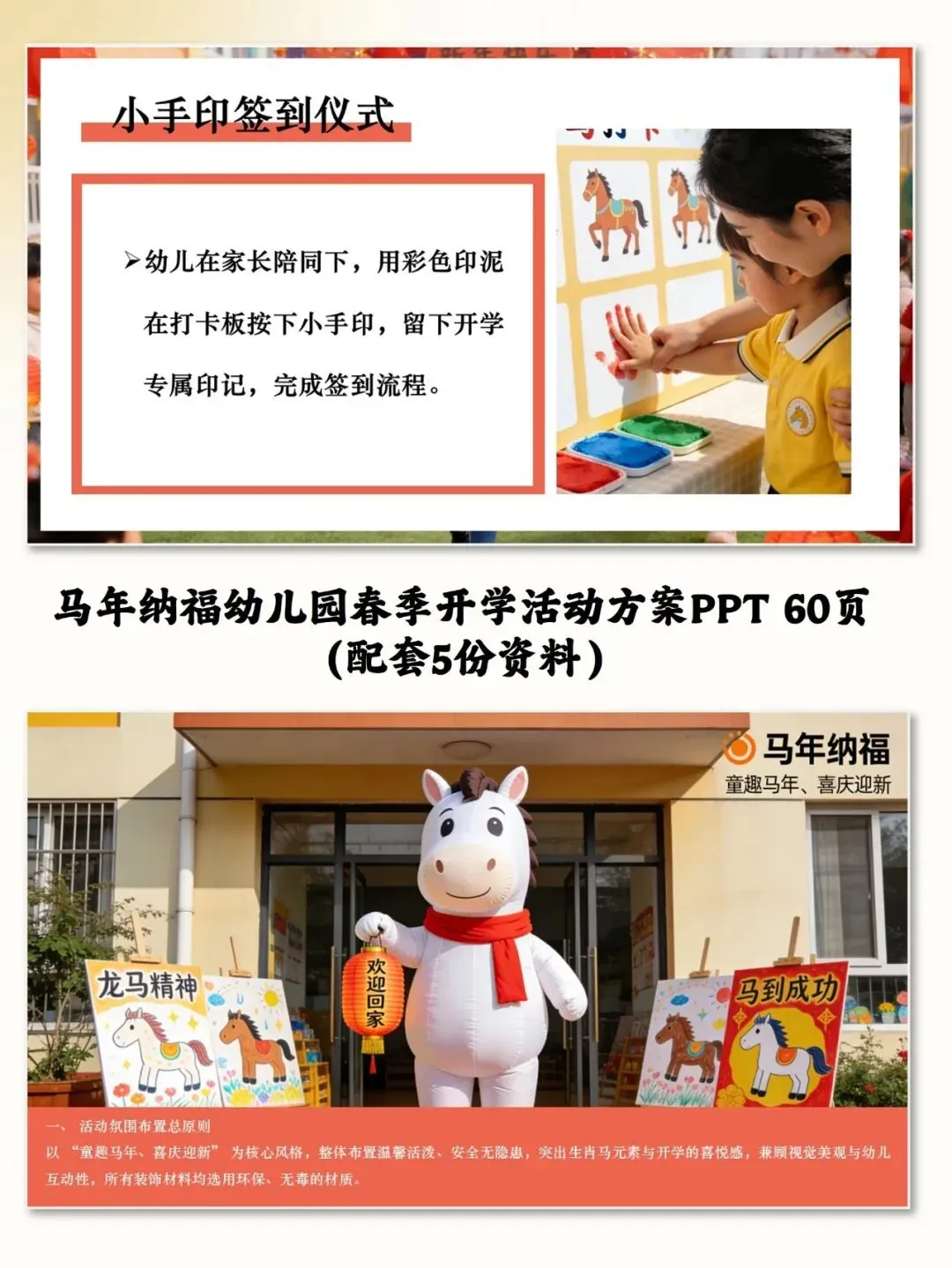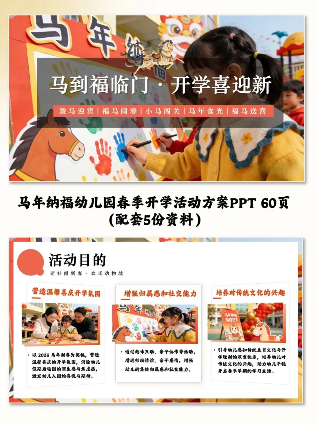 马年纳福幼儿园春季开学活动方案PPT(配套5份资料)