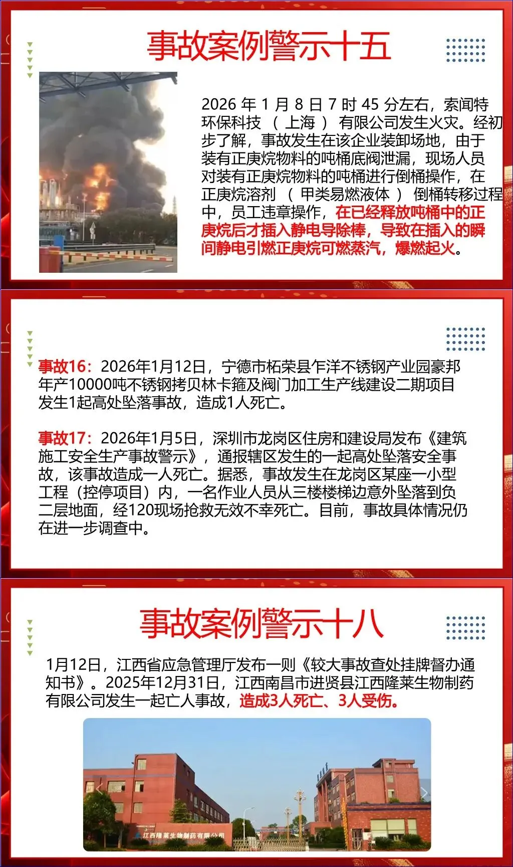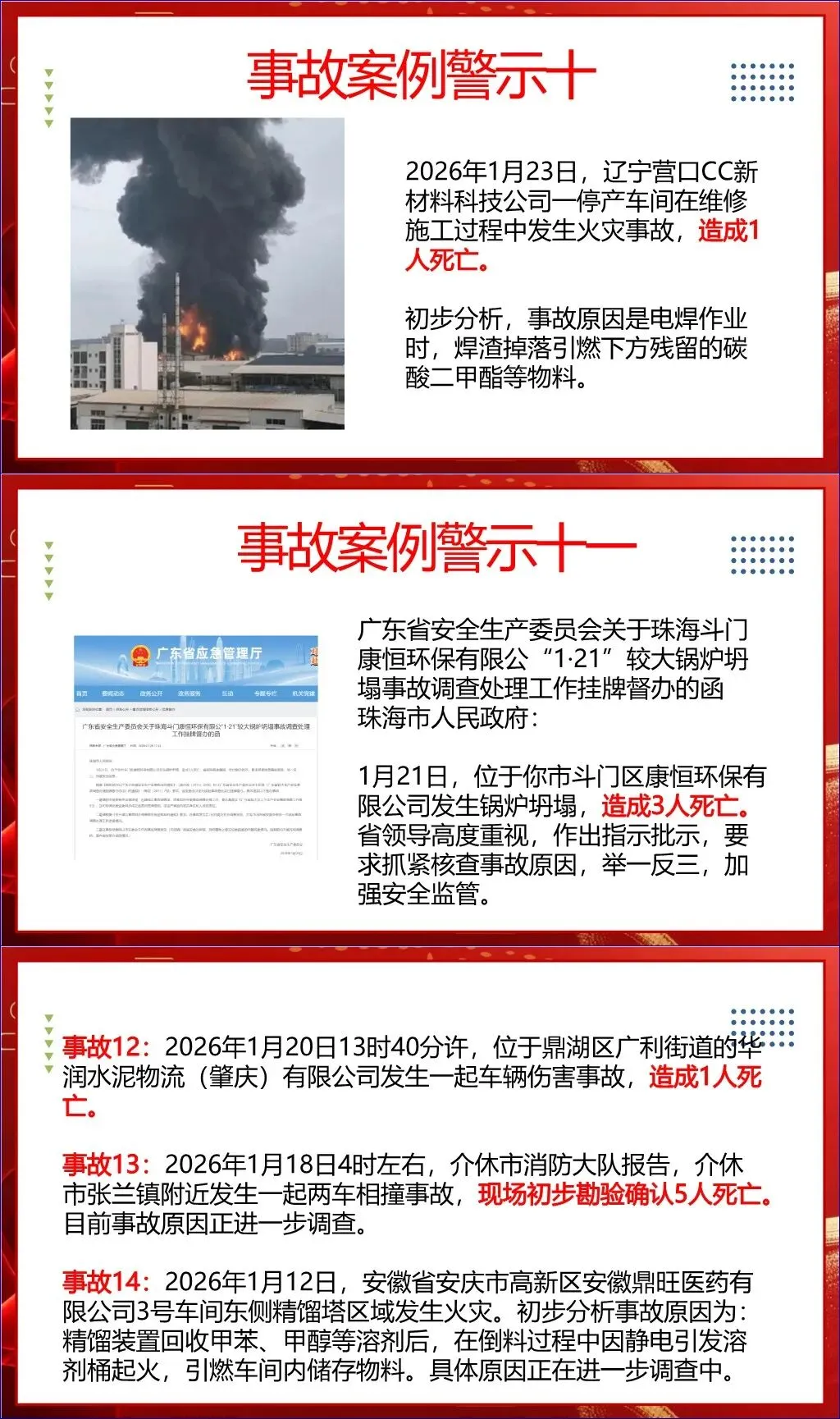 列举了2026年1月至2月初全国多地发生的17起典型安全事故,涵盖: