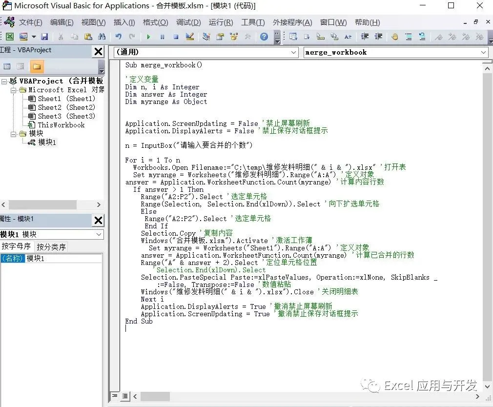 今天要学习的这个实现的方法比较简单,就是相当于手工一个个打开将每个要合并的工作薄里的工作表复制出来粘贴到目标工作表中。只是通一小段代码代替人工一步步的操作去实现。