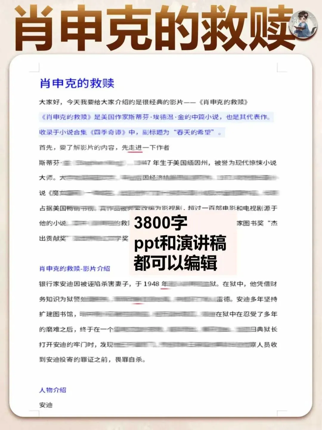 PPT包含展示的所有文字内容,包括电影介绍,人物介绍,影视鉴赏,个人感悟四个部分