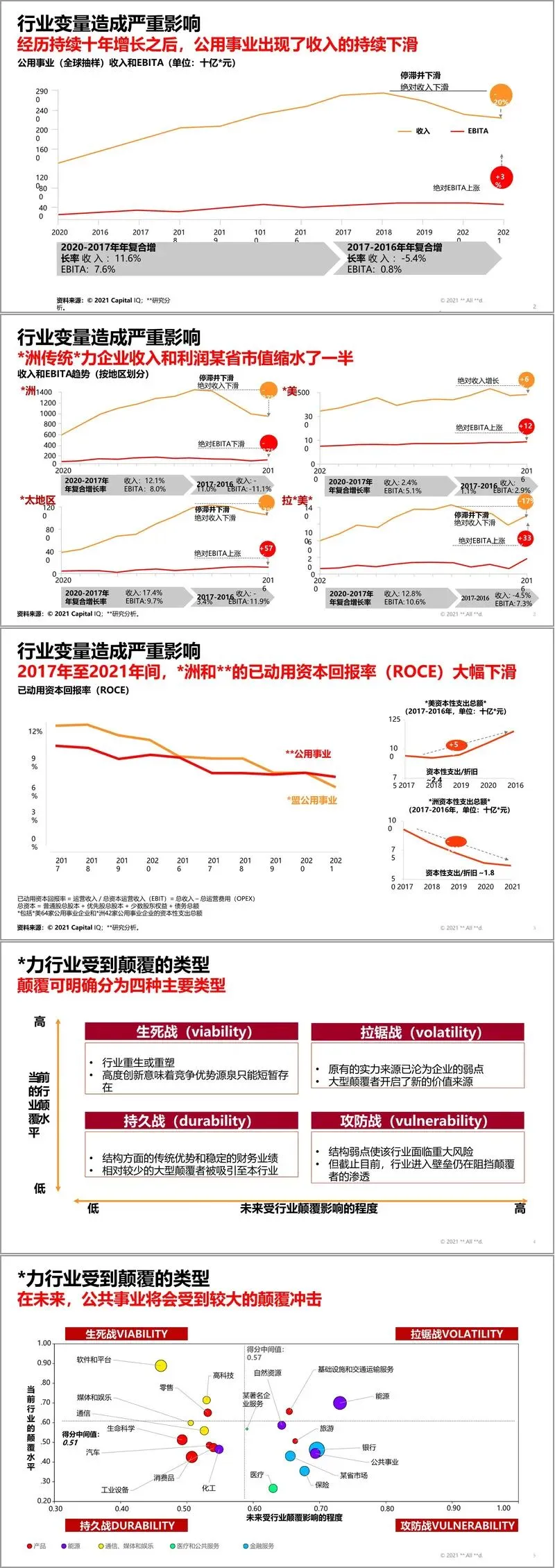 这些变量已对全球公用事业企业造成严重冲击,其收入和利润普遍下滑,市场估值缩水,投资回报率大幅降低。能源行业正从过去的“持久战”转向未来的“生死战”和“拉锯战”,意味着原有的实力来源可能沦为弱点,竞争优势变得短暂。
