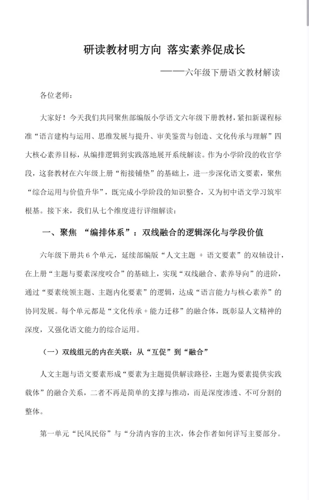 【教材解读】六年级下册语文教材解读PPt+解读稿