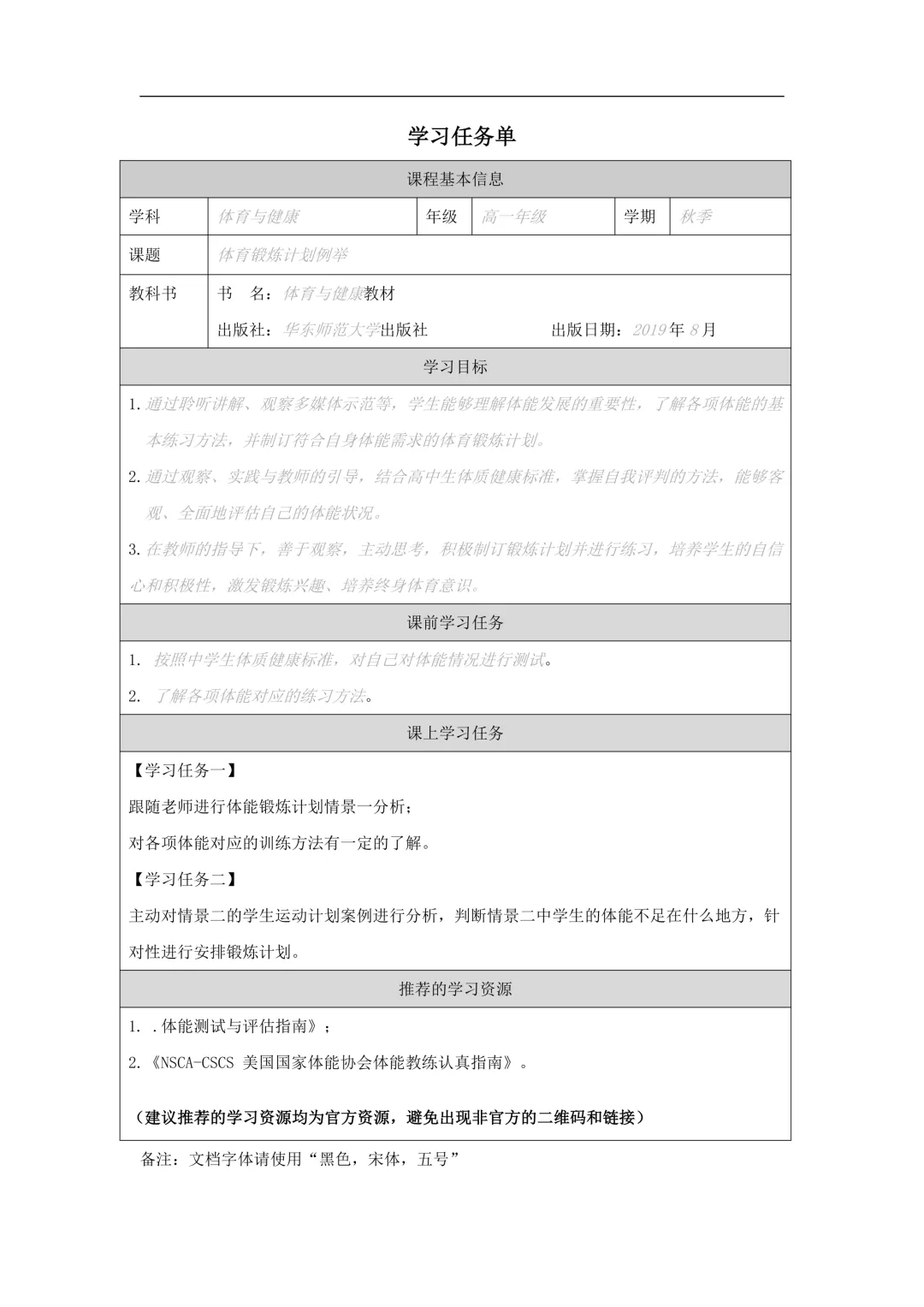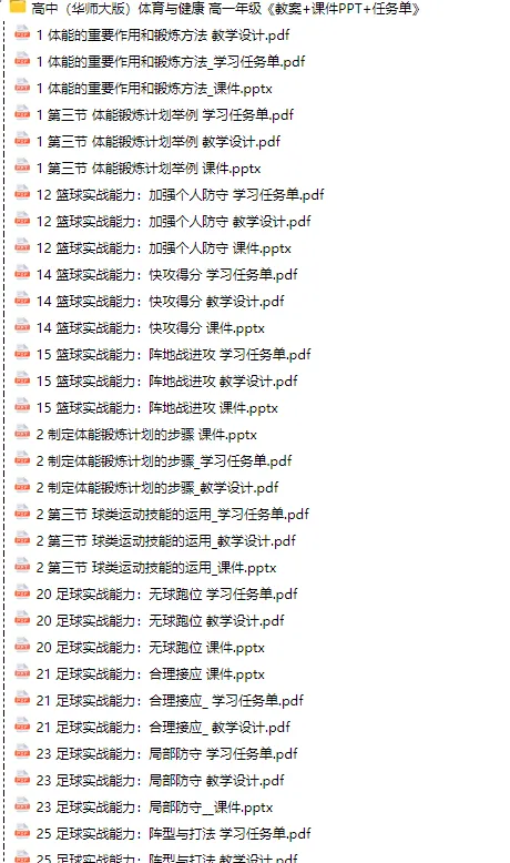 高中体育与健康 高一年级 教案+课件PPT+任务单(华师大版),可下载打印!