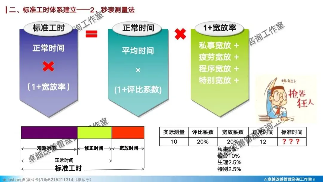 其中,“宽放”是为员工生理需求(如喝水、上厕所)、疲劳恢复等预留的时间。