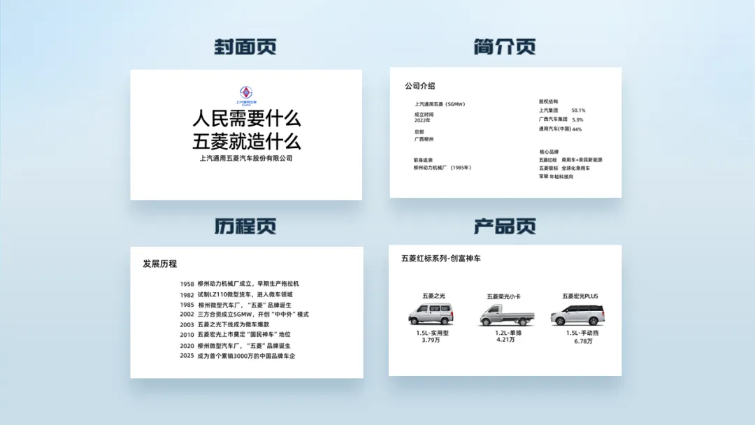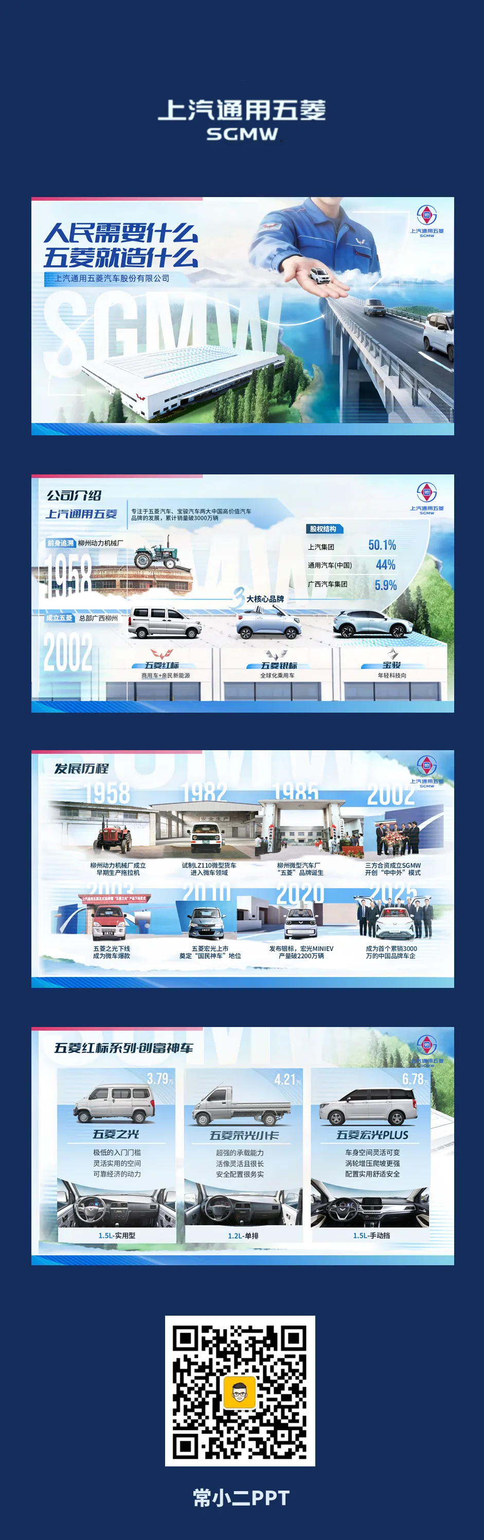 今天为大家分享关于汽车品牌上海通用五菱的一份品牌推广练习PPT,下面就把本次练习作品进行拆解和复盘,分享关于作品的设计思路。进入正题