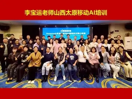 2025年9月20日,中国移动党校组织的全国财务人员专项培训,90多人,课程满意度100%。曾多次为中国移动党校、中国移动通信集团研究院、集团政企各部门进行AI培训,满意度均在99%以上。