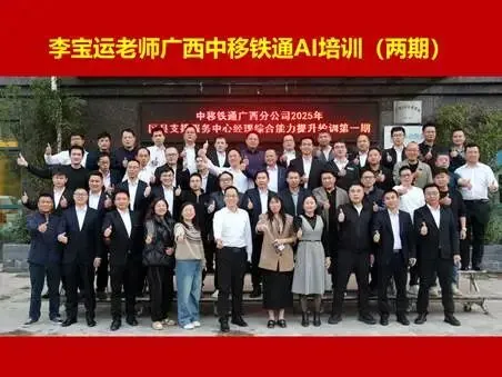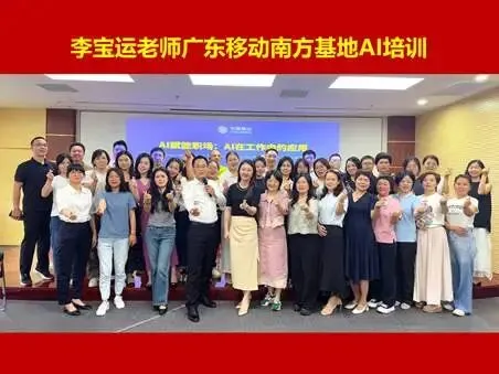 2025年9月20日,中国移动党校组织的全国财务人员专项培训,90多人,课程满意度100%。曾多次为中国移动党校、中国移动通信集团研究院、集团政企各部门进行AI培训,满意度均在99%以上。