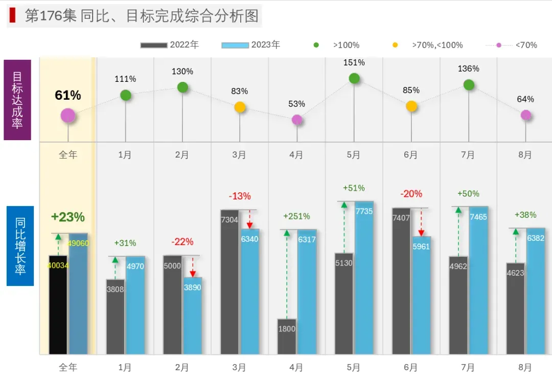 176集 同比、达成综合分析图模板