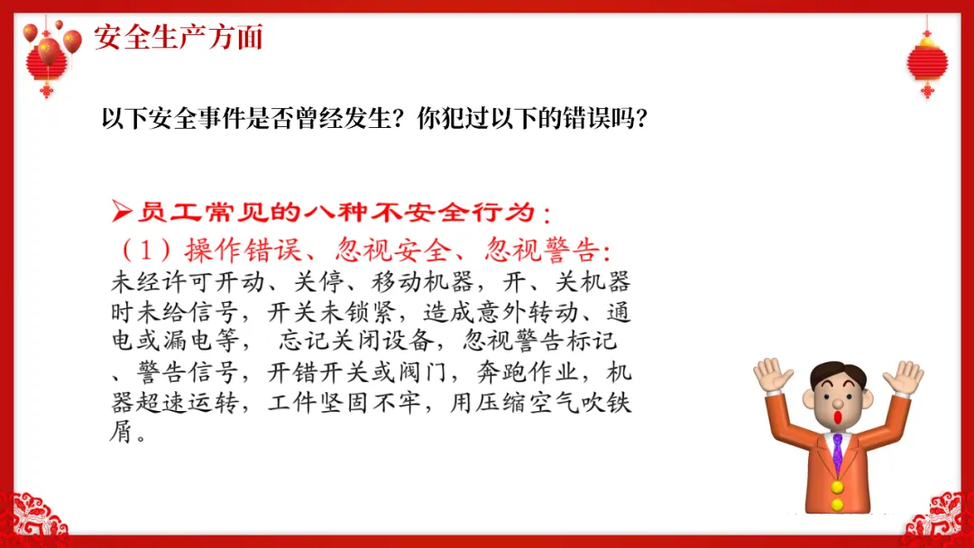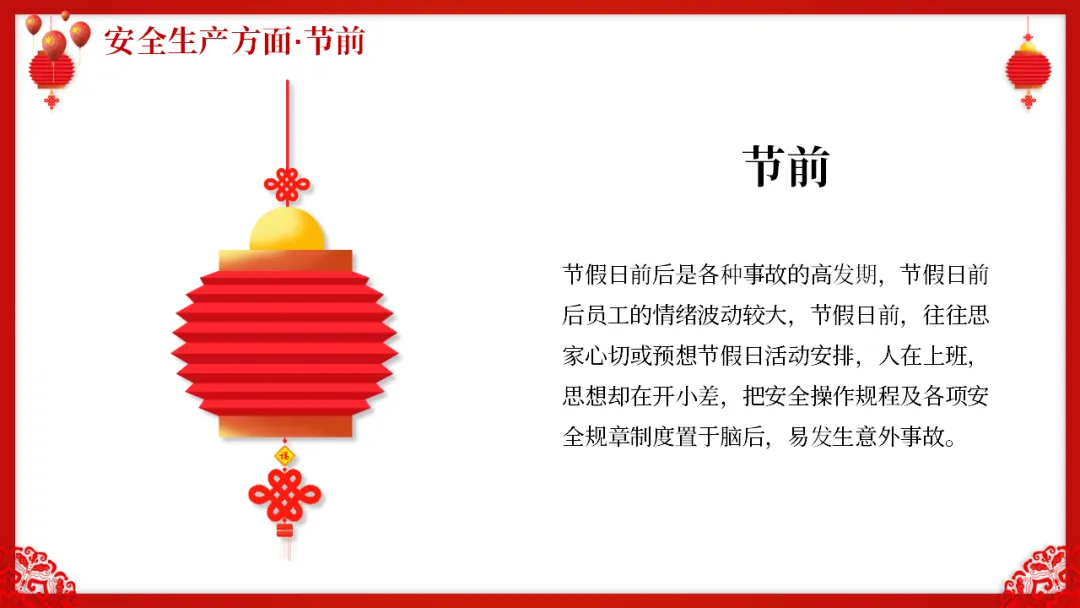 在春节来临前的一段时间,很多员工会出现"人在曹营心在汉"的情况。大家开始盘算着几点放假、买几号的票回家、给孩子买什么礼物、家里年货备齐没有。这种思家心切的心情完全可以理解,但如果带到工作中,就会酿成大祸。