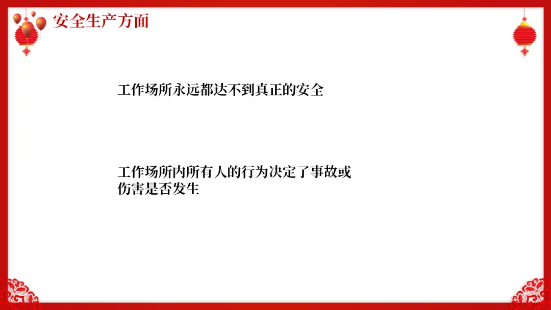 "工作场所永远都达不到真正的安全,工作场所内所有人的行为决定了事故或伤害是否发生。"
