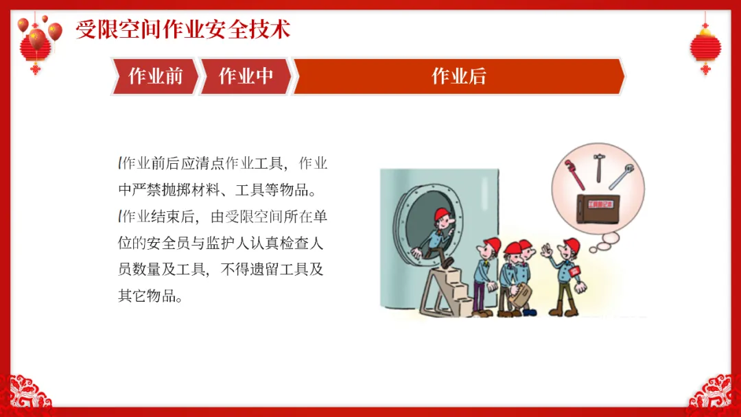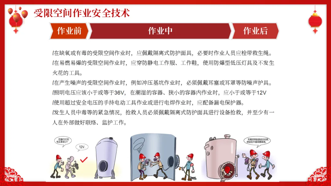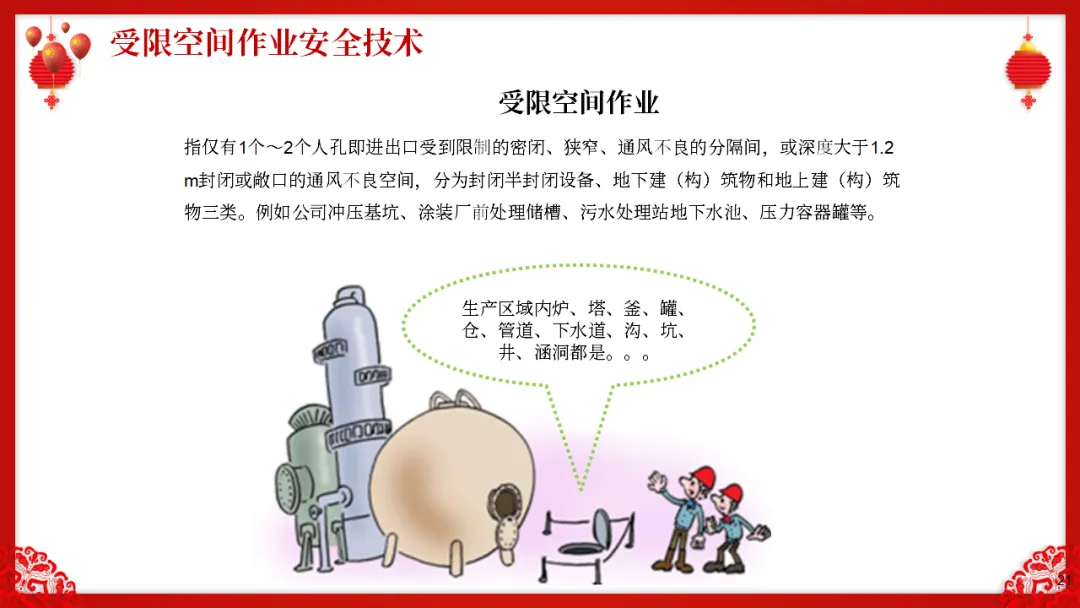 :进出口受限、通风不良、可能存在有毒有害气体或缺氧的空间内作业;