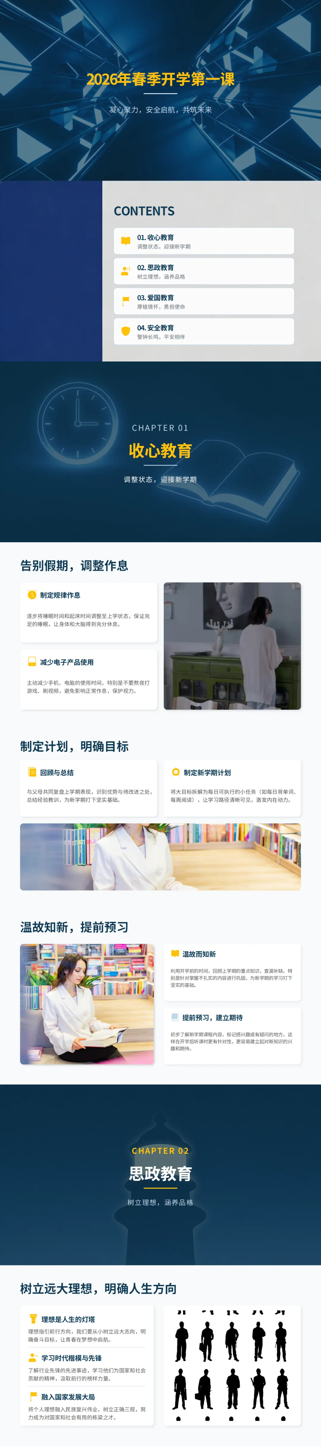 2026 年春季开学第一课围绕 “凝心聚力,安全启航,共筑未来” 的主题,从收心、思政、爱国、安全四个维度展开,为学生新学期的学习生活奠定坚实基础。