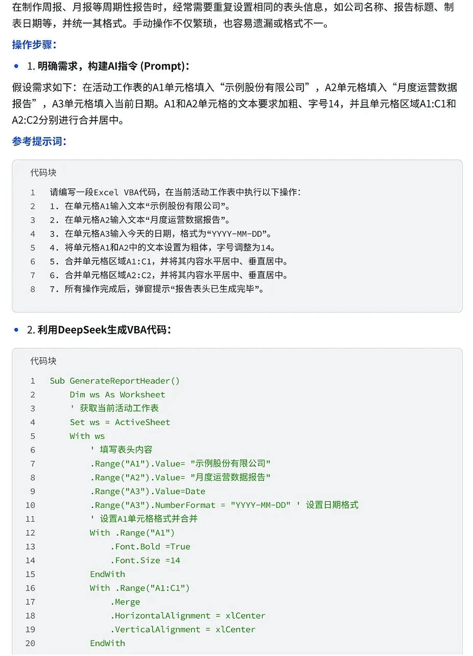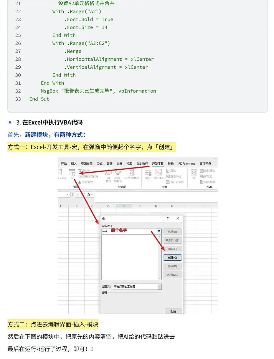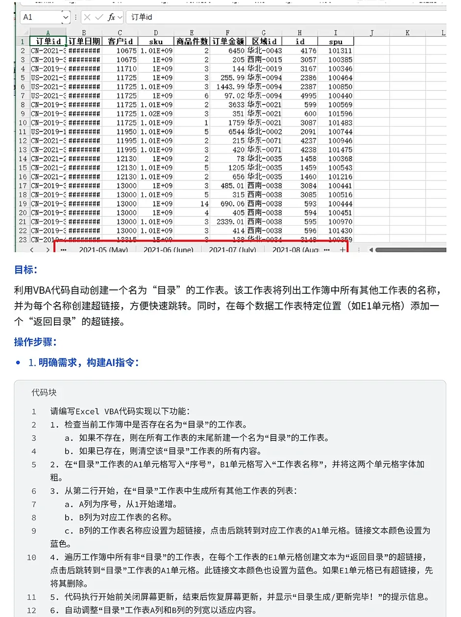 这个时候,我们就可以借助VBA工具,通过AI写代码的方式完成Excel自动化处理