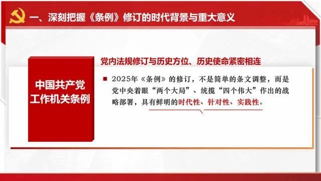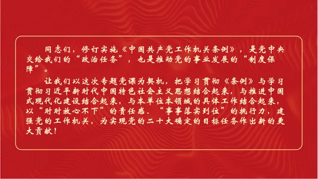 【PPT+讲稿】深学细悟《中国共产党工作机关条例》以高质量机关建设护航党的事业新征程(63页,含动画)