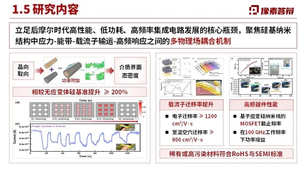 通过迁移率提升≥200%、截止频率ft>100GHz等精确指标,结合NEGF量子输运、三维多物理场仿真等模型,将应力工程、能带调控等机理转化为可验证、可优化的工程技术路径。