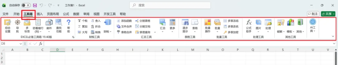 打开Excel / WPS ,功能区显示出“工具箱”,代表