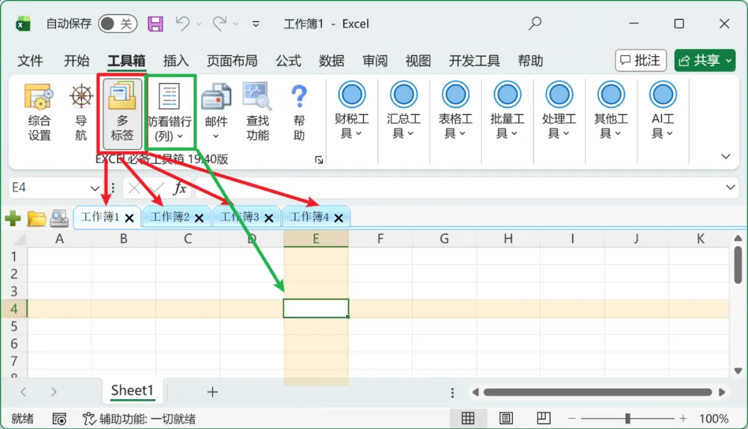 EXCEL必备工具箱是一个同时支持EXCEL / WPS插件,自带免费多标签(类似于OfficeTab)和导航,拥有近300项功能。 安装后就可以使用,与 EXCEL / WPS 完全融为一体。