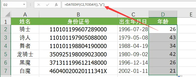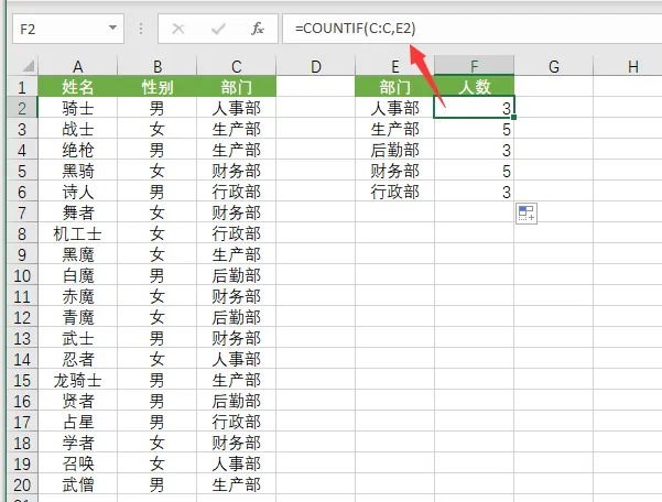 对于 HR 来说,在工作中经常会使用 Excel 来处理数据,如果不懂一些函数,那将会大大地降低工作效率。下面是我为大家整理的 HR 常用的一些函数公式,希望对大家有帮助。有一张员工表,一共有五个部门,需要快速统计出各部门都有多少人,可以使用COUNTIF函数,在F2单元格输入公式如下:要获取每个月的工作日天数(除去节假日),我们可以使用日期函数NETWORKDAYS。要根据上班时间和下班时间的标准,来计算员工的迟到早退情况。迟到:=IF(C2>TIME(9,0,0),"迟到","")早退:=IF(D2<TIME(17,30,0),"早退","")下图是员工考核成绩表,需要根据分数来进行评级,当然是使用IF函数了。使用公式:=IF(B2<60,"不及格",IF(B2<70,"及格",IF(B2<80,"良好","优秀")))=DATEDIF(B2,TODAY(),"y")&"年"&DATEDIF(B2,TODAY(),"ym")&"月"&DATEDIF(B2,TODAY(),"md")&"天"使用公式:=TEXT(MID(B2,7,8),"0-00-00")先用上面的方法算出出生年月日,然后通过提取出来的年月日获取年龄,使用公式如下:=IF(MOD(MID(B2,17,1),2),"男","女")以上就是今天分享的干货技巧,你Get到了吗?别忘记动手练习鸭~