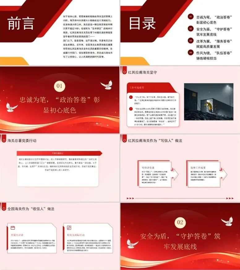 本次分享的课件主题是:党课海关系统国门之下皆是答卷PPT课件,讲稿字数:3334字,党课ppt页数:21页。