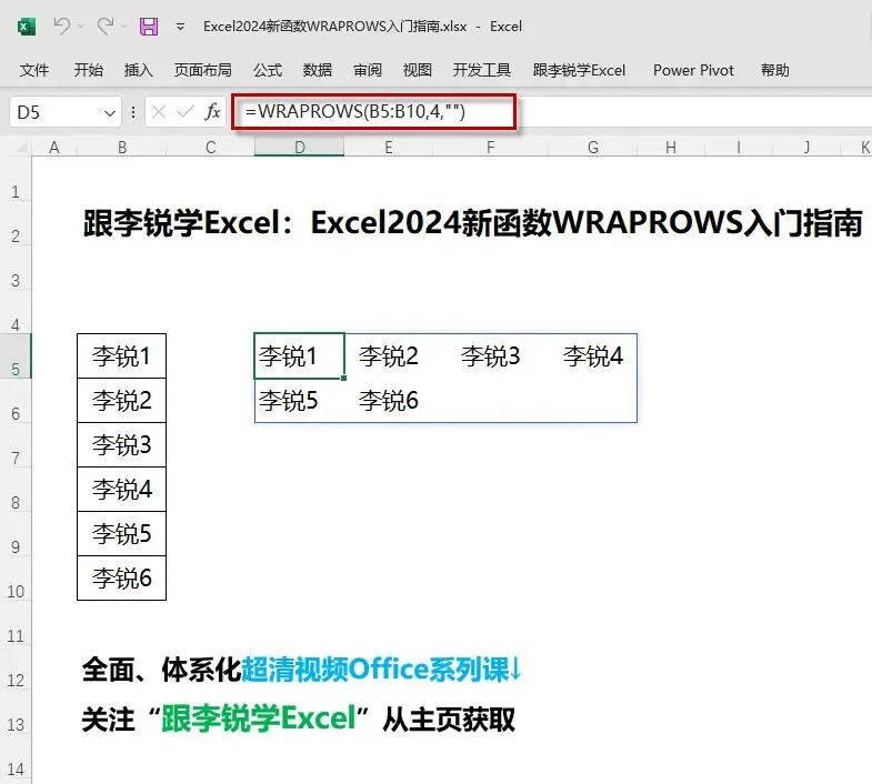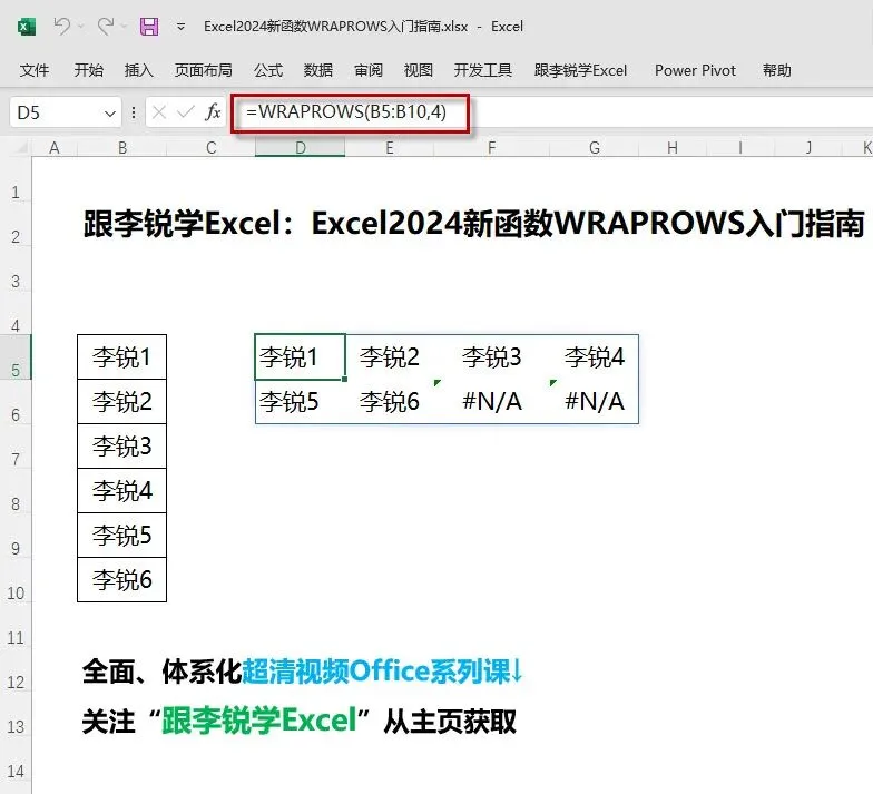 20241108 【跟李锐学Excel】WRAPROWS