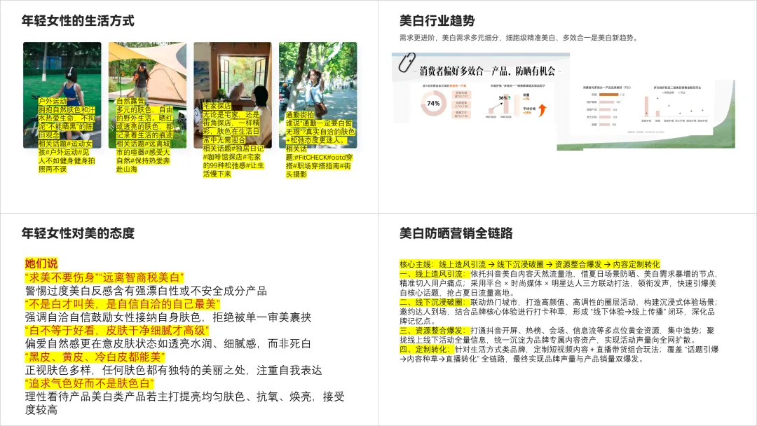 我们根据四个图表,分为四块内容,添加色块进行田字型排版。