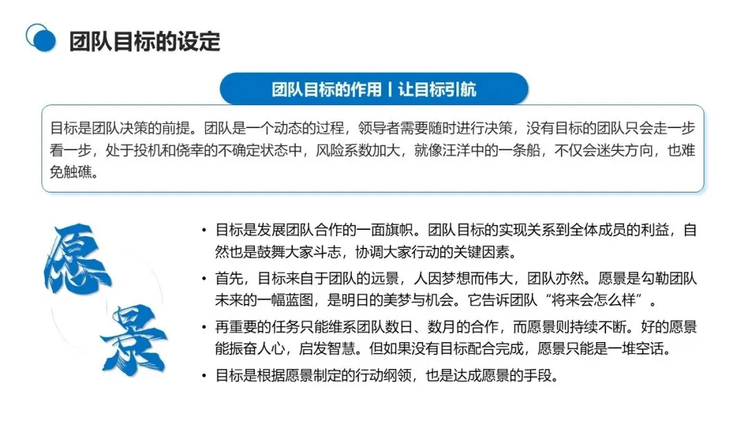 1. 锚定愿景:目标源于团队长远愿景,愿景勾勒未来蓝图,目标则是达成愿景的具体行动纲领。