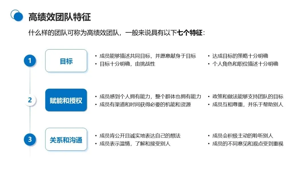 团队组建完成后,核心任务是提升效能,这需要从团队精神、人际关系、沟通机制三个维度发力。