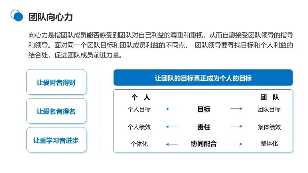 向心力是成员自愿追随团队的核心动力,源于团队对成员利益的尊重与重视。