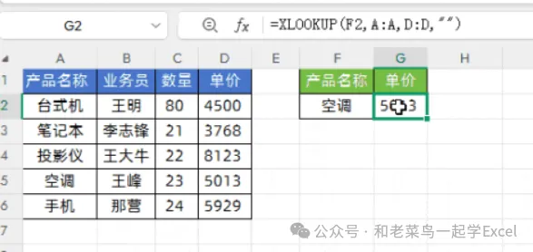 校长解读 :在A列找F2的内容,找到后,直接返回同行D列的值。比 VLOOKUP 直观一万倍,告别 column 函数辅助。