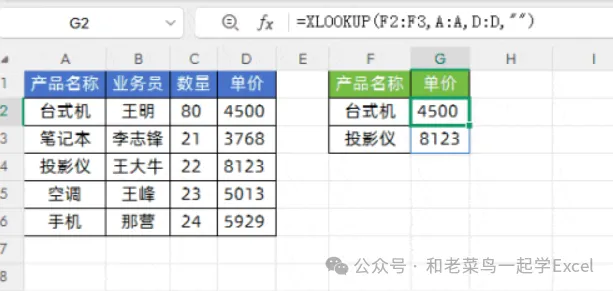 痛点 :要查“台式机”和“投影仪”两个单价,难道要写两次公式?