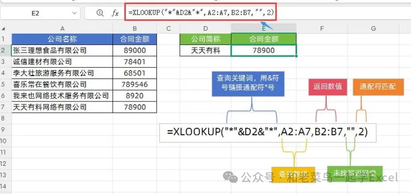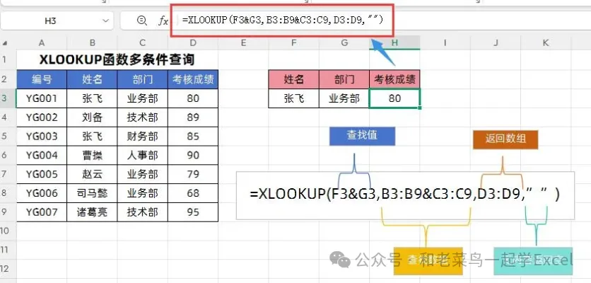 还在用VLOOKUP折腾到头疼?是时候给你的Excel武器库升级了。我是老菜鸟,《菜鸟的Excel函数修炼手册》的作者。今天不扯虚的,直接带你上手一个真正“降维打击”的查找函数—— XLOOKUP 。用好它,以前半小时的核对匹配,现在一分钟优雅搞定。它为什么强?一句话: VLOOKUP能干的它能干,VLOOKUP干不了、干不好的,它干得更漂亮。 逆向查找、多条件、批量查、模糊查,一个函数全包圆。=XLOOKUP(找谁, 在哪找, 返回谁, [找不到咋办], [怎么匹配], [从哪开始找])- 查找区和结果区完全独立:再也不用数第几列,想返哪列就选哪列。