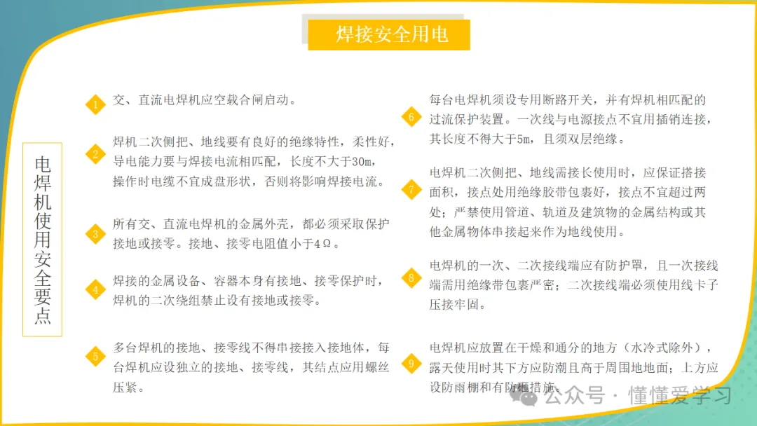 - 安全操作规范:严格遵守电焊安全操作规程,如使用绝缘垫、定期检查电焊设备、避免在潮湿环境中作业等。