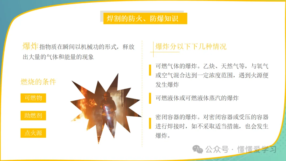 在焊割作业中,特别是在易燃易爆环境中,使用防爆电气设备是防止火灾和爆炸事故的关键。它们能够有效隔离或控制电气火花、电弧等点火源,避免其与周围的爆炸性混合物接触,从而确保作业安全。