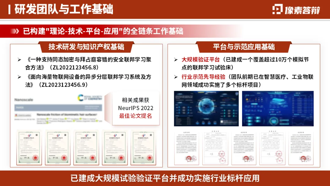 关注公众号,后台发送“模板”可获取PPT源文件分享方式PPT 需围绕 “深地可燃冰开采与能源转化” 核心主题,构建清晰的递进式逻辑。开篇明确国家重大专项的定位与背景,中间板块从科学意义、应用前景到技术突破,层层深入呈现项目价值与创新成果,结尾通过团队基础强化项目可行性。各章节衔接自然,数据与技术细节精准对应,让观众快速理解项目的战略意义与技术路径。整体采用红棕主色调搭配白色背景,契合国家重大项目的严谨与专业气质。标题与重点内容用加粗、色块突出,关键数据以醒目的数字标注强化记忆点。图表与实景图结合,如开采原理示意图、深海装备实拍图,将复杂技术直观化。统一的像素答辩标识与版式风格,既保证视觉协调,又能让观众在视觉引导下聚焦核心信息。需强化内容的说服力与传播性,核心技术突破、成果数据等关键信息前置,方便答辩时快速抓牢评审注意力。团队资质与合作基础板块突出奖项、设备等硬支撑,增强项目可信度。页面文字精炼,避免大段堆砌,配合可视化元素降低理解成本,让答辩者在有限时间内高效传递项目优势与创新价值。