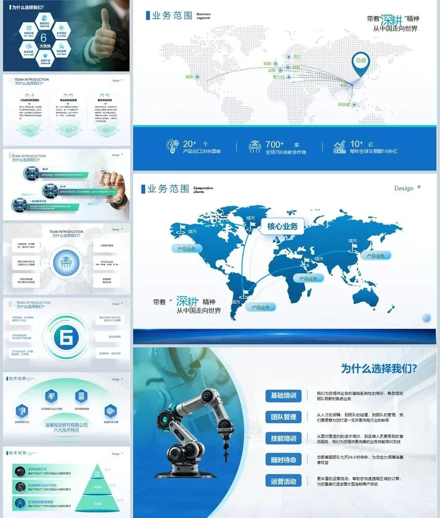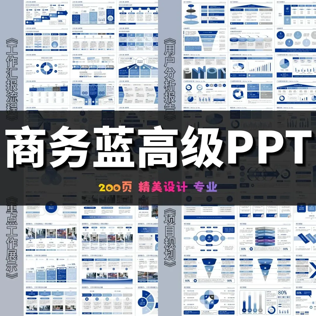这套商务蓝配色PPT模板合集包含两款精心设计的演示文稿,共计430页内容。采用统一的蓝色商务风格,从封面到内页保持视觉一致性,适用于多种正式场合的汇报演示。