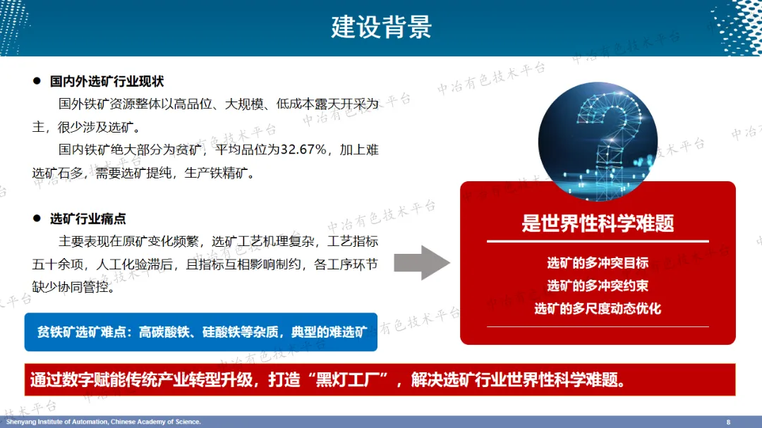 今天给大家带来的是 中国科学院沈阳自动化研究所 罗赛老师 分享的“智慧选厂技术研究与应用”,希望大家喜欢。