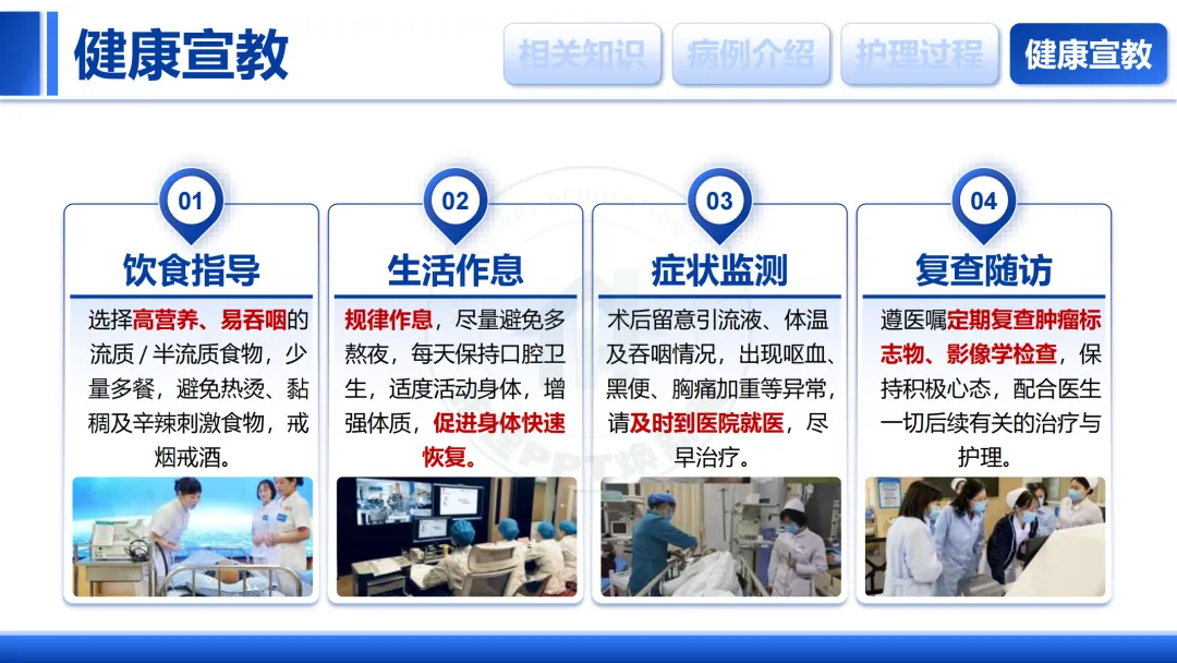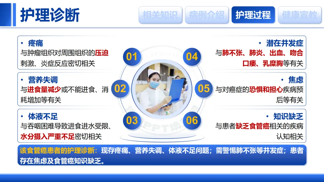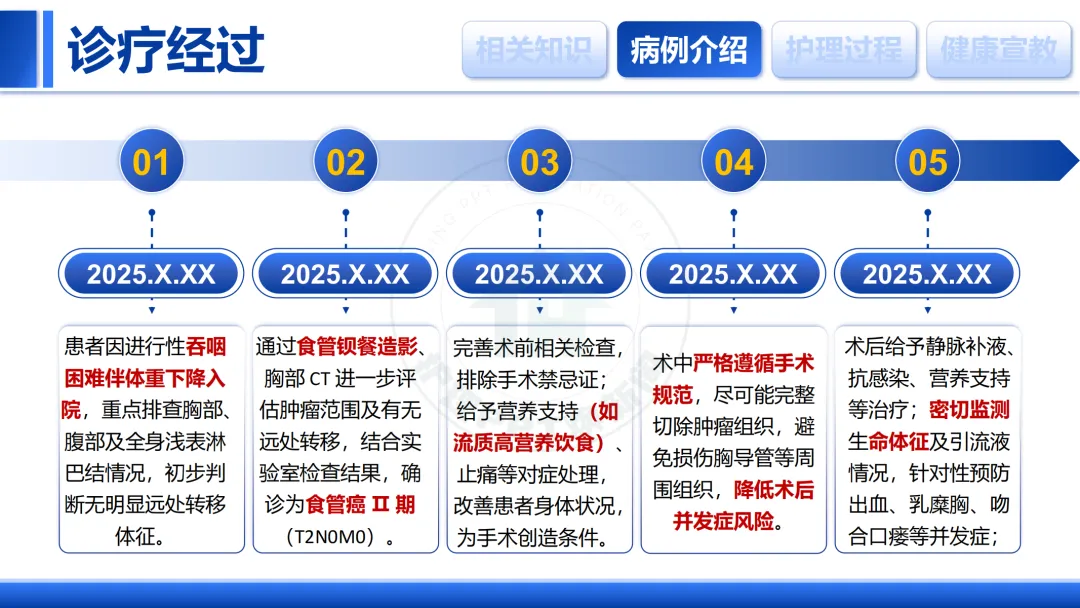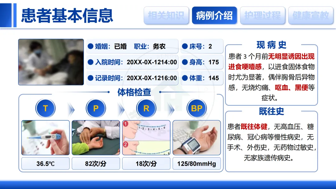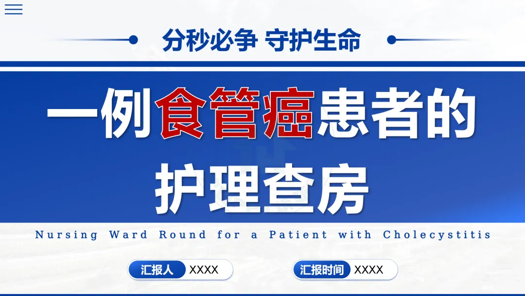 大家好,今天我们进行一例食管癌患者的护理查房,主题是“分秒必争,守护生命”。
