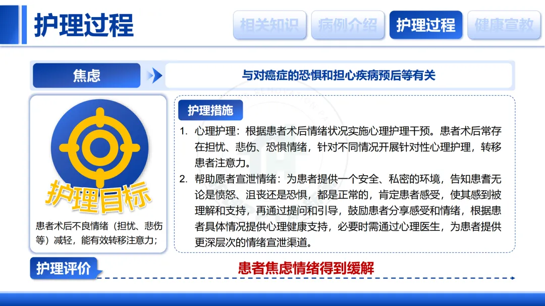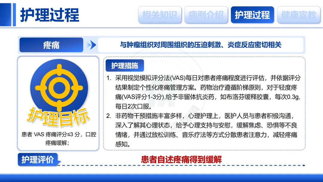 我们明确了疼痛、营养失调、体液不足等主要护理问题,并关注并发症与心理状态。