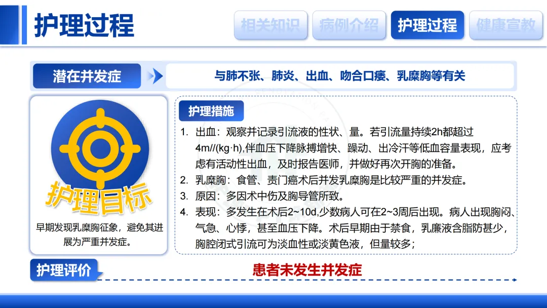 重点监测👀出血、乳糜胸等术后并发症,做到早期识别、及时干预。