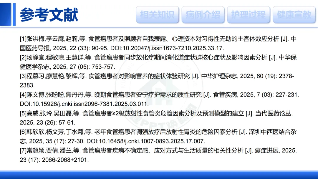 本次查房参考了近期食管癌护理相关的多篇研究。
