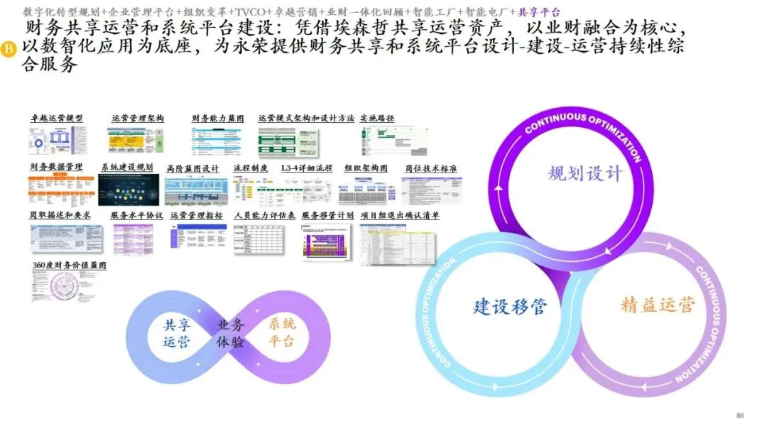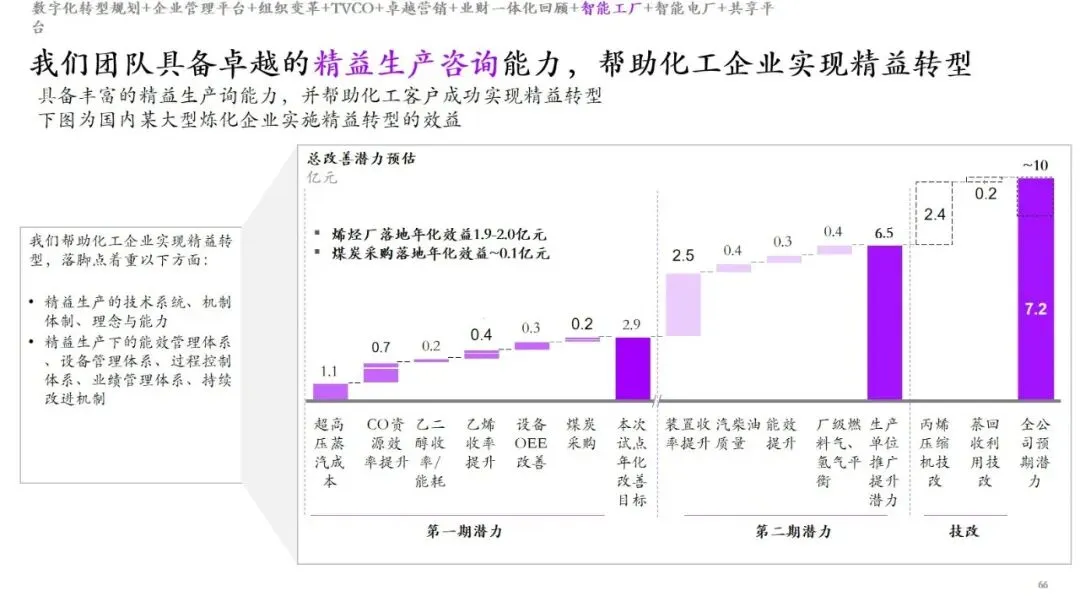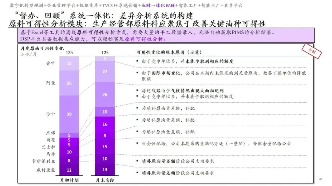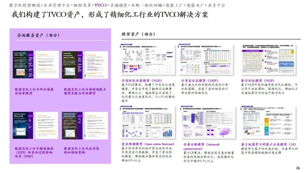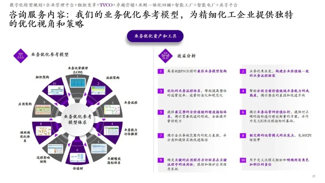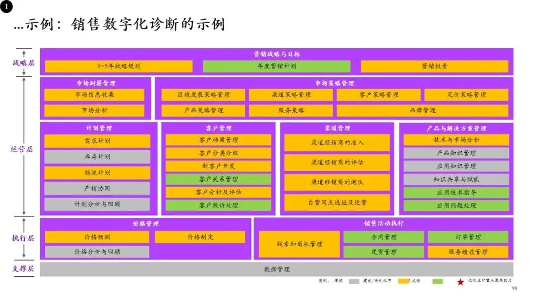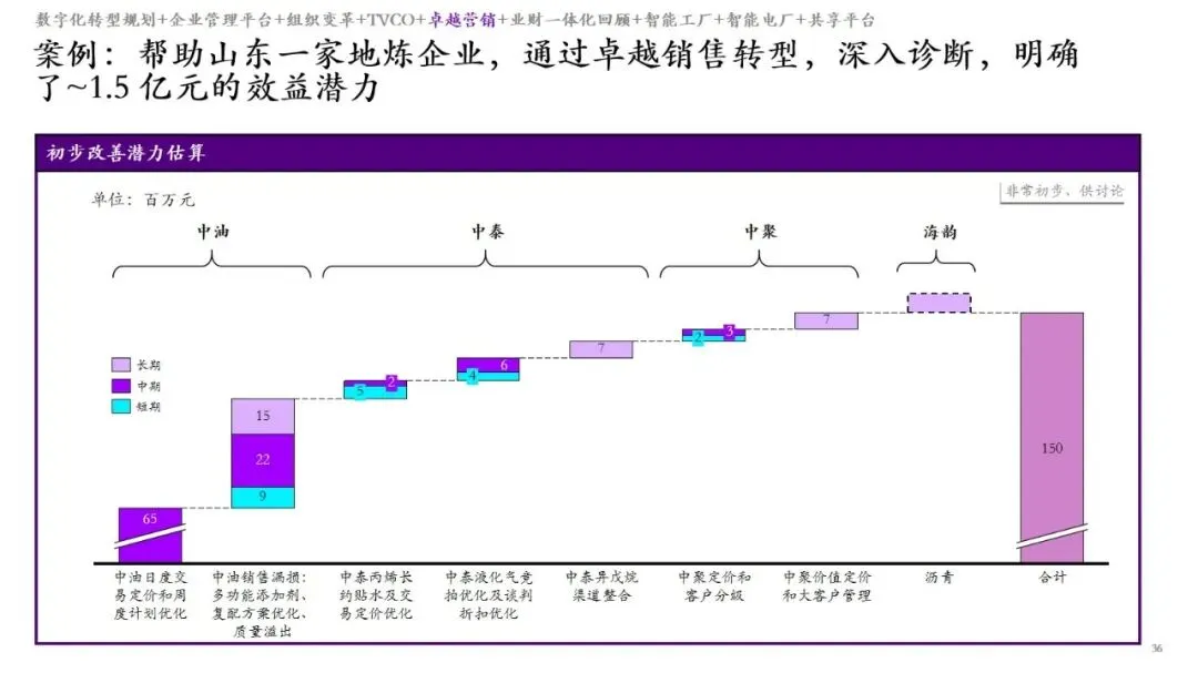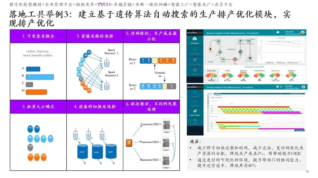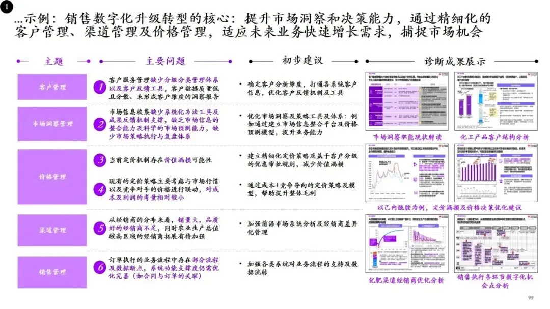 在运营层面上,围绕整个价值链的优化,打通“产、供、研”的前后端。运用需求预测模型,优化产销计划,智能排产系统,提高企业整体效益:山鹰国际的电子采购和电子销售,使企业的总利润率提高了2%以上;京博石油销售公司试点模块年落袋利润2200多万元。同时,建立卓越的销售系统,以客户细分、弹性定价模型为基础,使市场需求精确匹配。