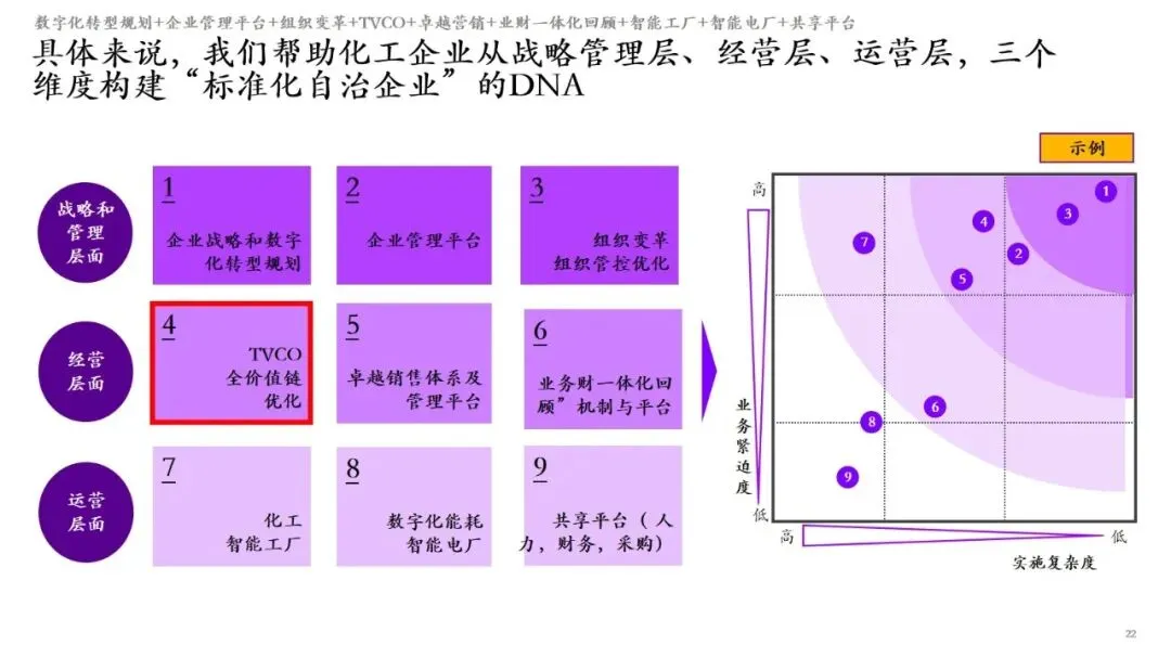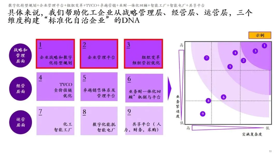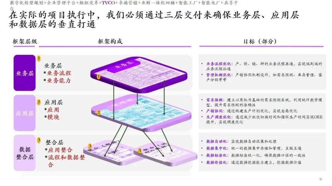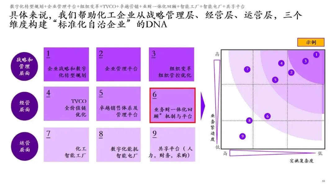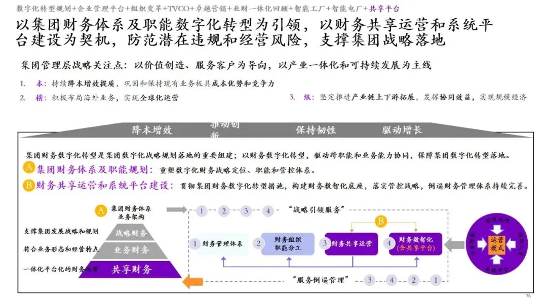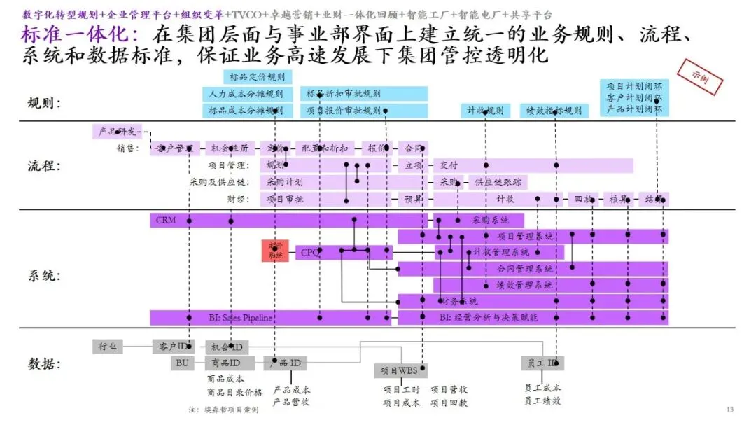 战略层面以“标准化自主型企业”的构建为重点,构建统一的业务规则和数据标准以及平台系统,并以矩阵式的组织结构改革为基础,为企业转型打下坚实的基础;借鉴华为的长期管理改革经验,推进放权和流程规范化,使高层将重点放在战略决策上,而底层能够独立、有效地实施。