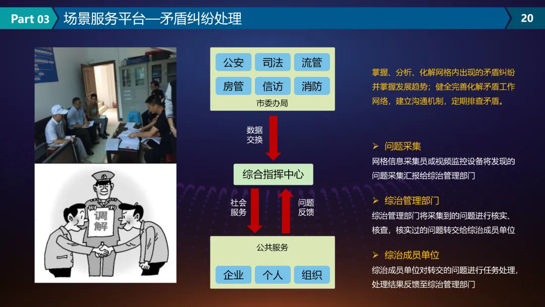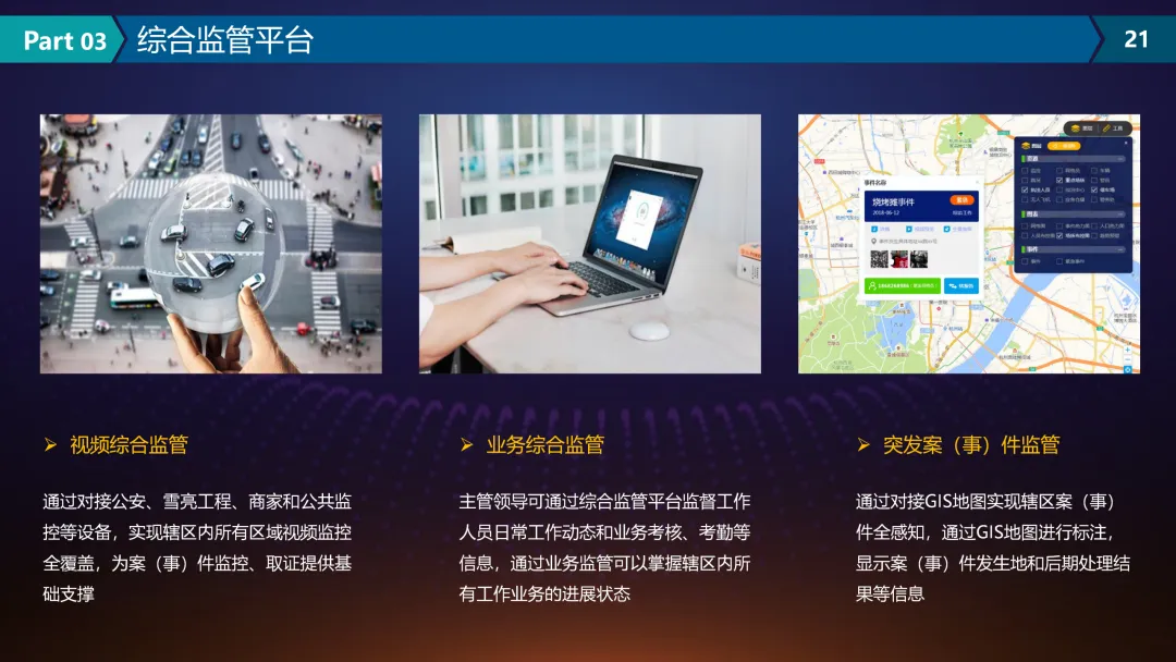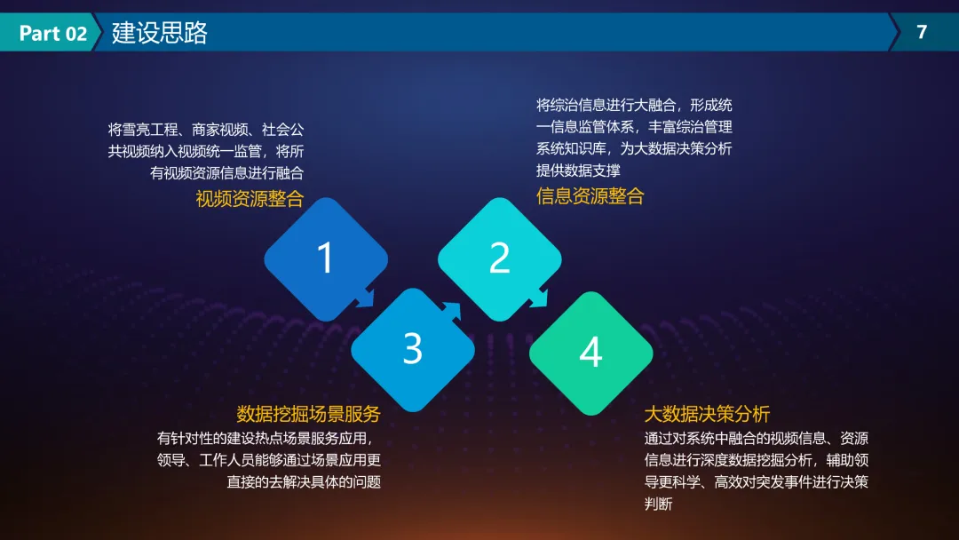 本方案围绕“市域治理现代化建设”主题,以科技赋能和社会治理深度融合为主线,系统提出了适应新时代需求的治理能力提升路径。方案首先基于国家政策支持、信息技术发展与基层治理需求,分析了当前市域治理中信息孤岛、数据分散、协同不足等突出问题,明确了构建一体化、智能化治理体系的必要性和紧迫性。在此基础上,提出以视频资源整合、信息融合、数据挖掘和智能决策为核心的建设思路,推动治理模式从分散管理向协同联动转变。在建设内容方面,方案设计了层次清晰的产品架构,涵盖统一指挥调度、综合监管、大数据决策分析等平台,并聚焦信访管理、特殊人员管控、校园安全、智慧城管等具体场景,提供可落地的技术服务。通过整合视频监控、人脸识别、GIS地图、物联网等技术,实现治理过程可视化、风险可预警、事件可追溯,提升应急响应与日常监管效能。