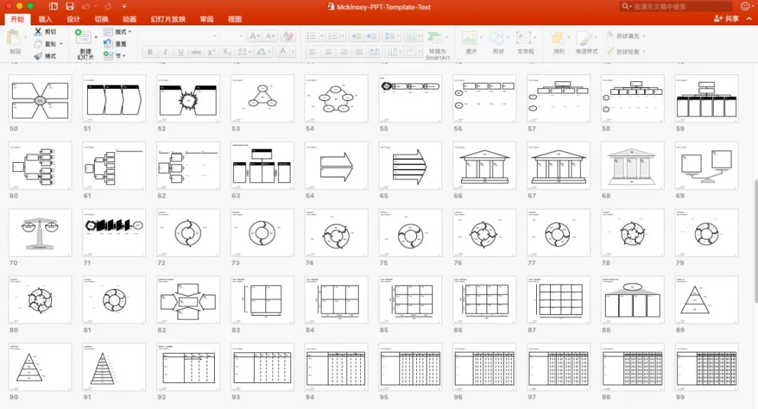 事实上,咨询顾问们很少会把PPT称为“PPT”,正统的叫法应该“Slides(片子)”或是“Deck”,前者意指单张或几张PPT页,后者意指一整套PPT报告(就像a deck of cards)。所以,咨询顾问们常常会抱怨,“我还有好多页片子要画”或者“老板让我今晚做个deck出来”。
