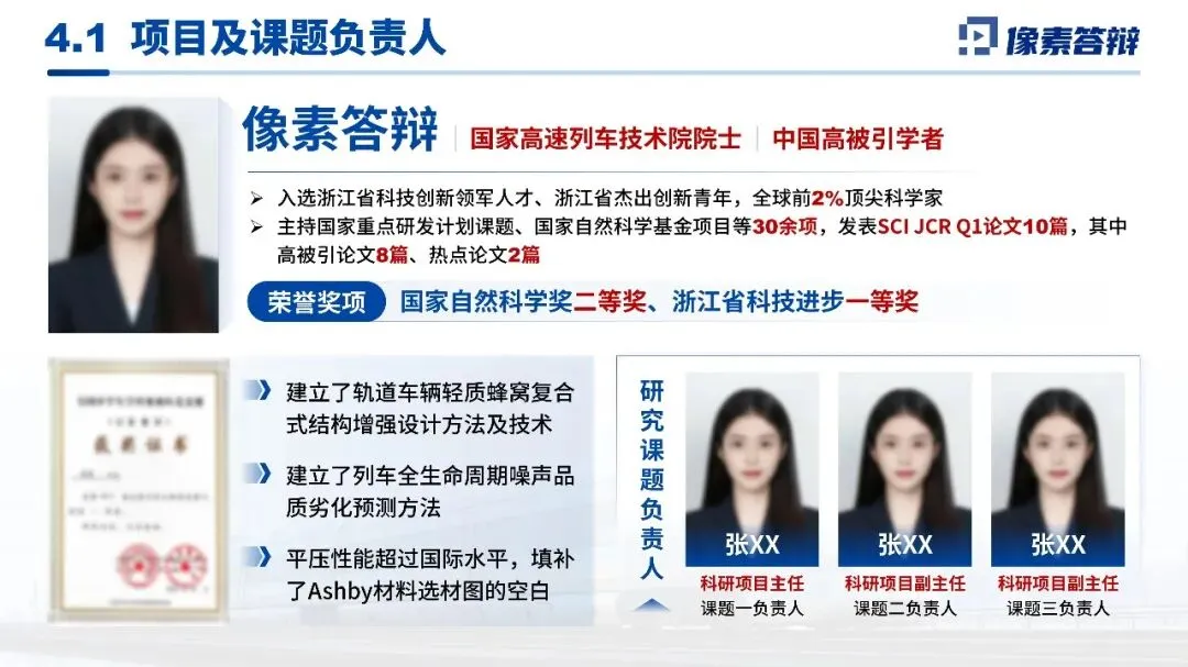 首先要搭建清晰且有说服力的逻辑框架。开篇需单刀直入,直击 “多功能结构设计制备” 领域的核心瓶颈,如 “结构 - 功能一体化设计理论缺失” 等,并明确提出本项目的研究靶向与核心思路,迅速抓住评审注意力。中段则应按照 “个人基础 - 学术突破 - 支撑条件” 的经典结构,层层递进地展示研究成果,让评审清晰了解研究的来龙去脉。结尾部分需将研究成果进行升华,提炼出如 “理论 - 技术 - 工程” 的新范式,形成从 “发现问题” 到 “实现突破” 再到 “未来延展” 的完整逻辑闭环,展现研究的长远价值和影响力。